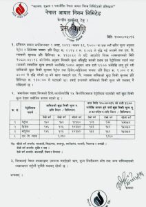 नयाँ दर अनुसार पेट्रोलको मूल्य प्रतिलिटर पहिलो वर्गमा १७०, दोस्रोमा १७२ र तेस्रो समूहमा १७३ रुपैयाँ पुगेको छ निगमको भनाई छ। यसै गरी, डिजेल र मट्टितेलको भाउ पहिलो वर्गमा १५०, दोस्रोमा १५२ र तेस्रो समूहमा १५३ रुपैयाँ निर्धारण गरिएको छ । एलपी ग्यास भने घटेर प्रति-लिण्डिर १६ सय ६० रुपैयाँमा आएको छ । मुल्य सुची-
