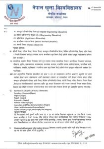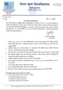नेपाल खुला विश्वविद्यालय केन्द्रीय कार्यालयको भर्ना आवेदन सम्बन्धी सूचना