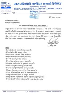 मध्य भोटेकोशी जलविद्युत् कम्पनी लिमिटेडकाे साधारण सभा पुष २७ गते